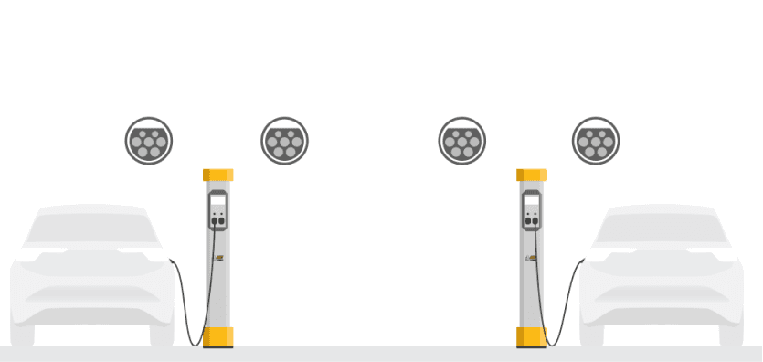 Kaikille ladattaville autoille tarvitset oman latauskaapelin. Kuvassa neljä tyypin 2 latauspistettä.