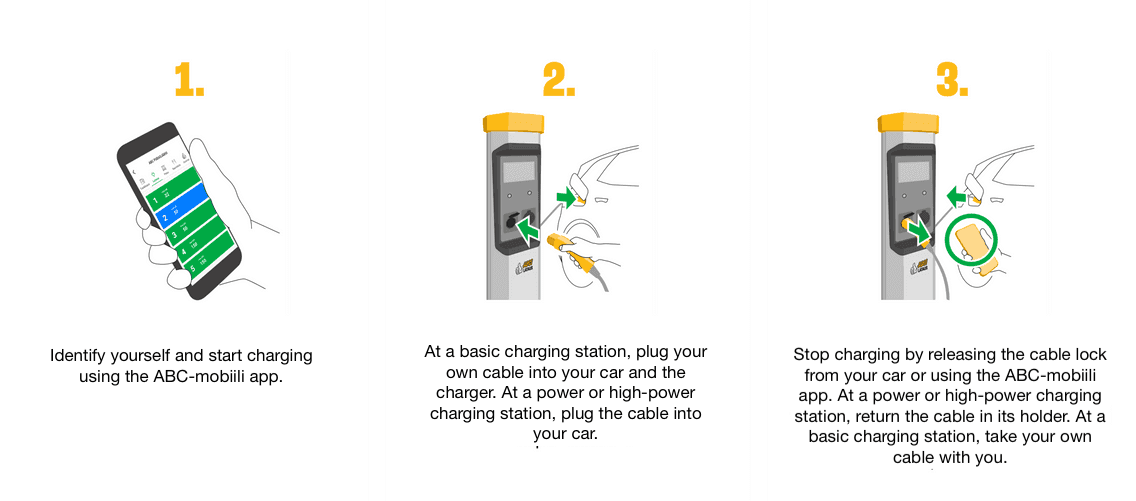 Start charging using the ABC-mobiili app: select the correct charging station in the app and start charging. When making an authorisation hold, prepare to identify yourself using your own banking app, for example.