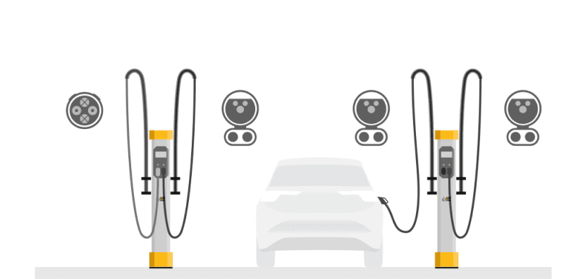 The fixed cable installed on charging stations usually reaches the other side of the car, but not the opposite corner.