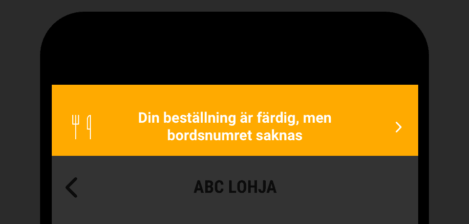 Om beställningen är färdig men bordsnumret saknas så ändras länken i överkanten till orange.