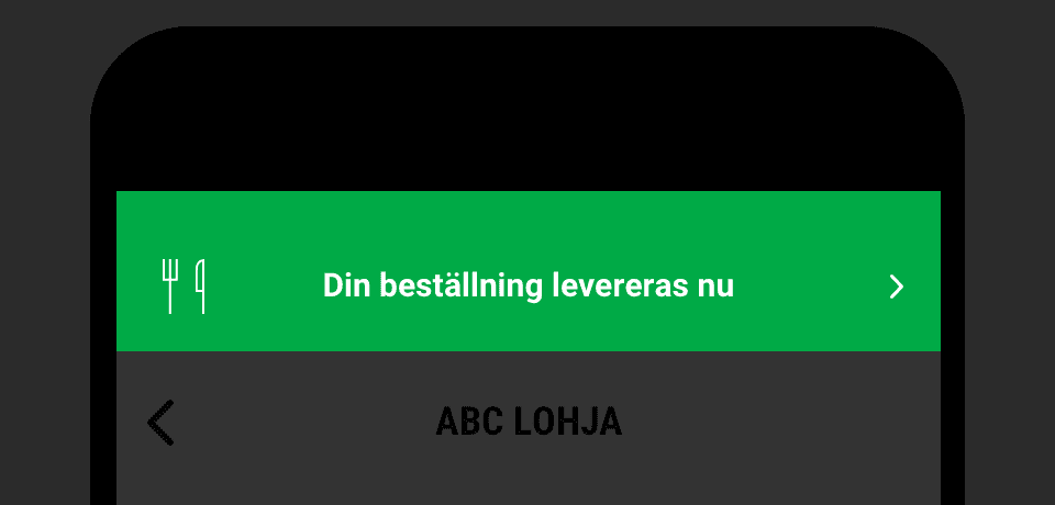 Dölj beställningsvyn om du vill använda andra tjänster i ABC-mobiili. Du kan tanka, ladda och tvätta bilen på vanligt sätt under det att matbeställningen är aktiv.