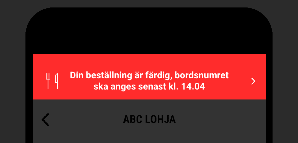 Länken ändras till röd när bordsnummer inte har angivits och din beställning har varit färdig i 5 minuter.