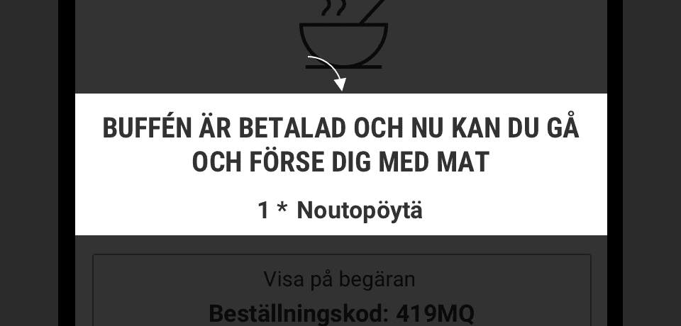 Tryck på ”Betala för buffé” så skickas din beställning till stationen.