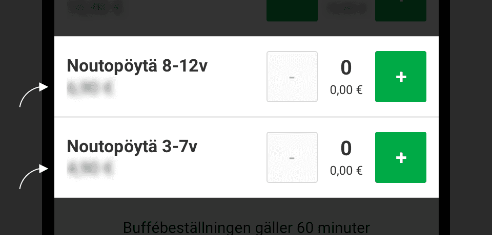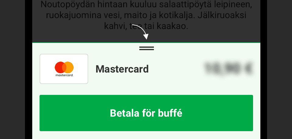 När du betalar för buffémåltider med ABC-mobiili får du inga stämplar i måltidsförmånskortet. Förmånen ingår färdigt i betalningssättet.