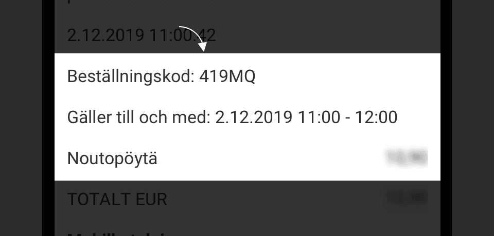 Ett kvitto på betalningen finns under Historik i ABC-mobiili. Visa kvitto för personalen på begäran.